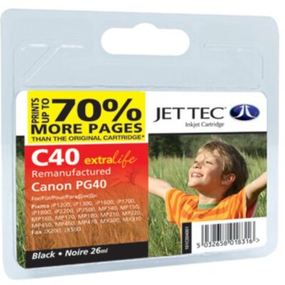 PG40 Black Jettec Remanufactured Canon Ink Cartridge
