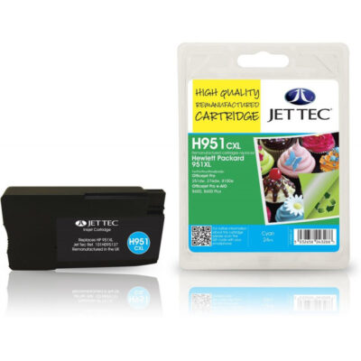 HP951 XL Cyan JetTec Remanufactured High Capacity Printer Ink Cartridge – H951CXL