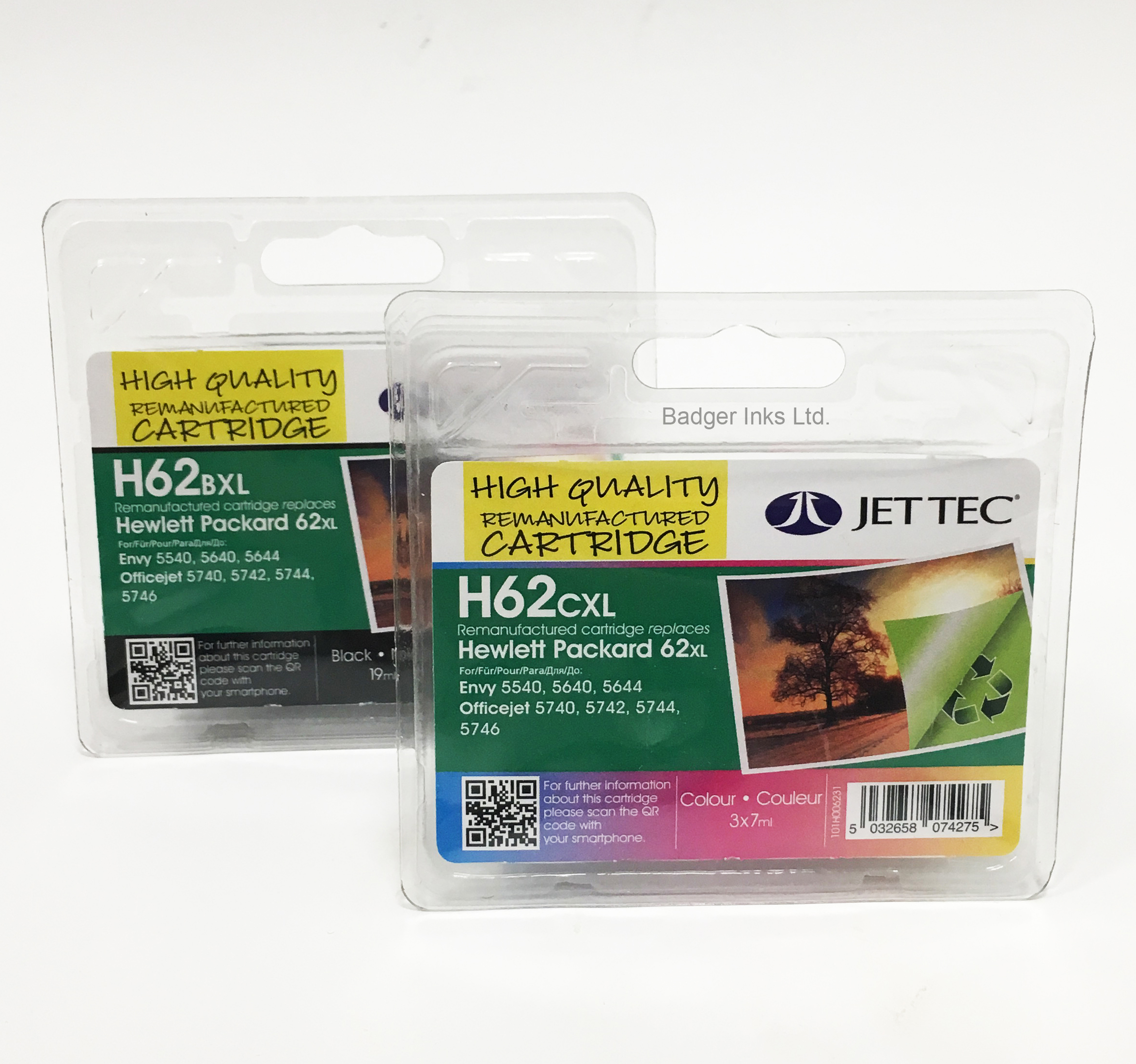 H62XL Black & Colour JetTec Remanufactured High Capacity Ink Cartridges HP62 – 2 item Multipack