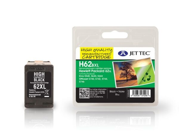 H62XL Black JetTec Remanufactured High Capacity Ink Cartridge HP62 HP 62XL