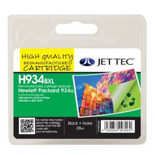 H934XL Black High Capacity JetTec Remanufactured Ink Cartridge HP934XL