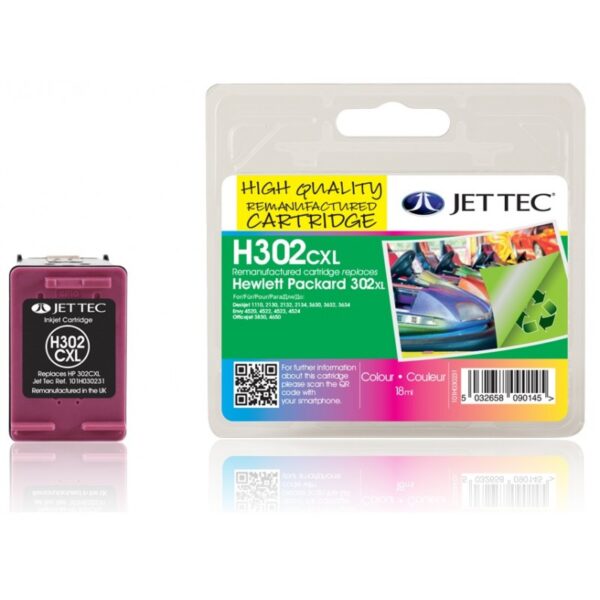 HP302XL Jettec Colour Remanufactured Printer Ink Cartridge – HP302