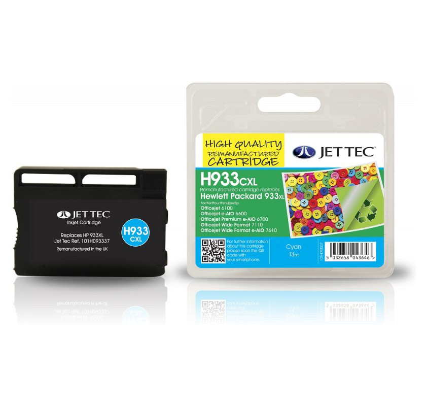 HP933 XL Cyan HP JetTec Remanufactured Ink Cartridge H933CXL