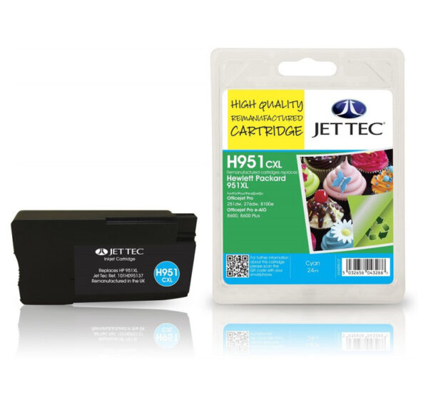 HP951 XL Cyan JetTec Remanufactured High Capacity Printer Ink Cartridge – H951CXL